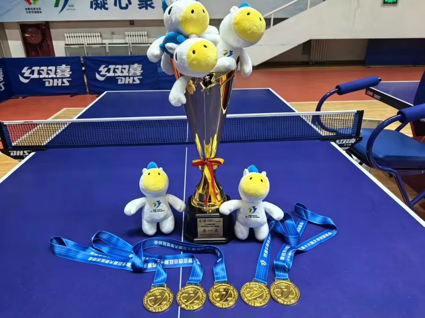 我院乒乓球队在自治区第十三届大学生运动会摘金夺银