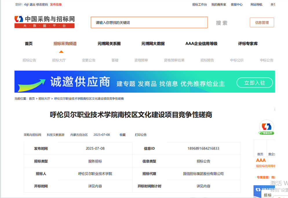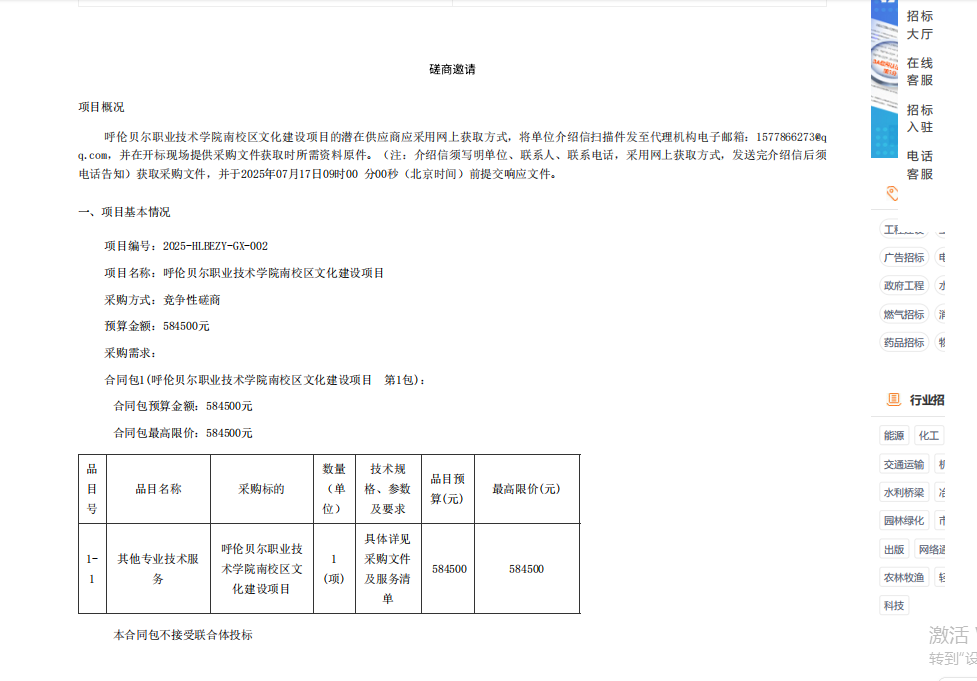 呼伦贝尔职业技术学院南校区文化建设项目竞争性磋商公告